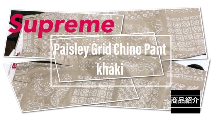 Supreme 20ss week10 にて発売されたチノパンツです。 様々なパターンのペイズリー(バンダナ)柄が使用されているのが特徴で カーキは同色系の色合いなので他のカラーとは印象が変わります。 参考になれば幸いです。 4Kで撮影しているため解像度変更で詳細が確認できます。 BGM:GarageBandにて作成